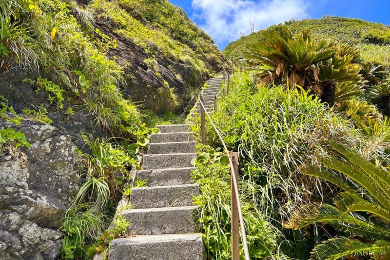 この階段を登りきると、いよいよ笠利崎灯台はもうすぐそこです。