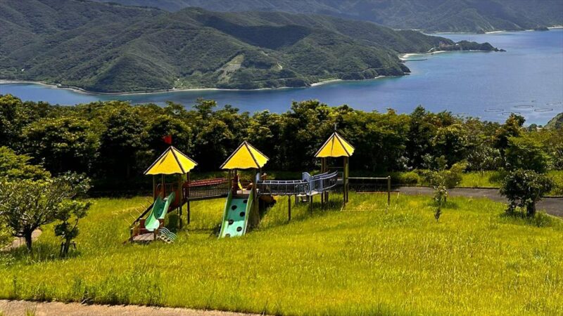 峯田山公園は、標高約320mから眺める焼内湾の絶景が魅力の穴場スポット。