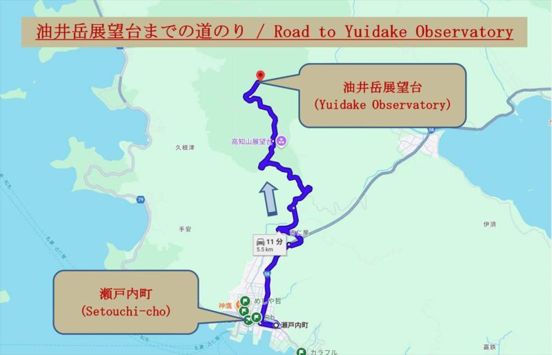 車で数分南へ進むと「高知山展望台」があり、あわせて訪れやすい立地です。